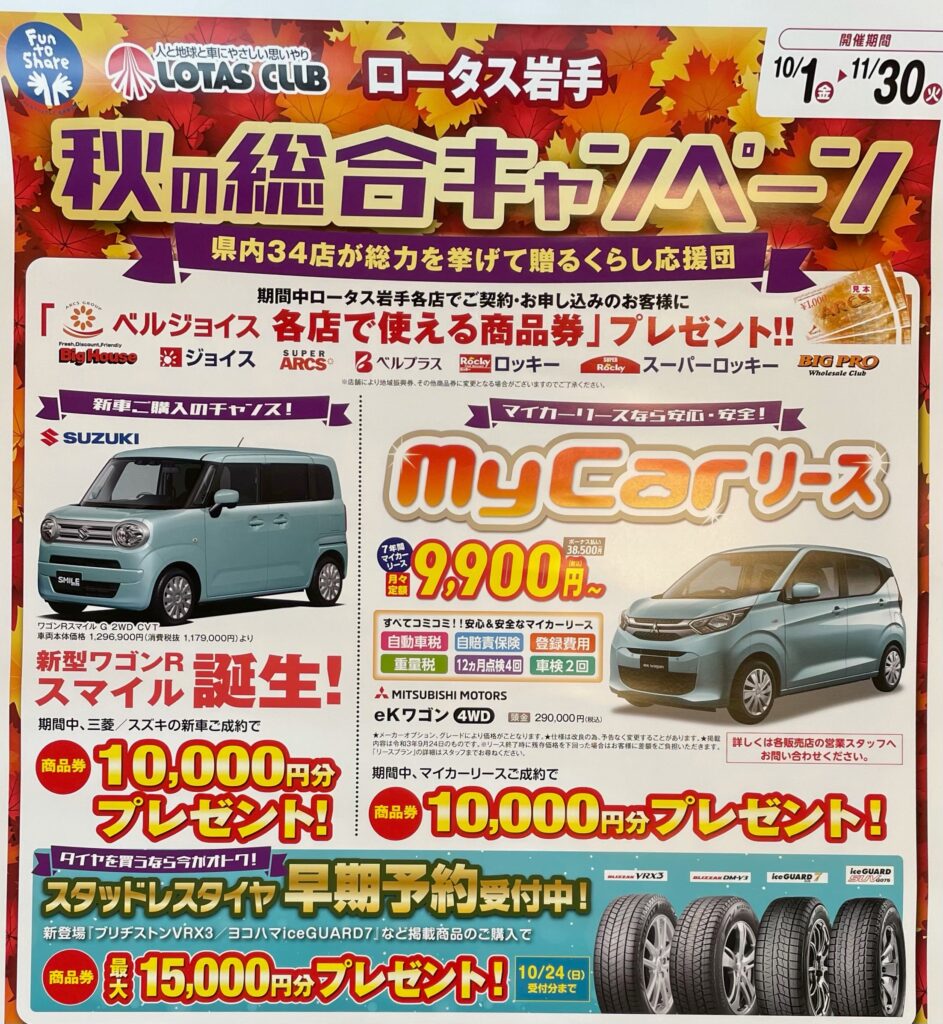 他にもカーリースやスタッドレスの早期ご予約など