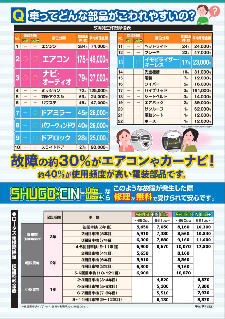車検時のみ加入でき、エアコン・カーナビ・電装品などが故障した際に
