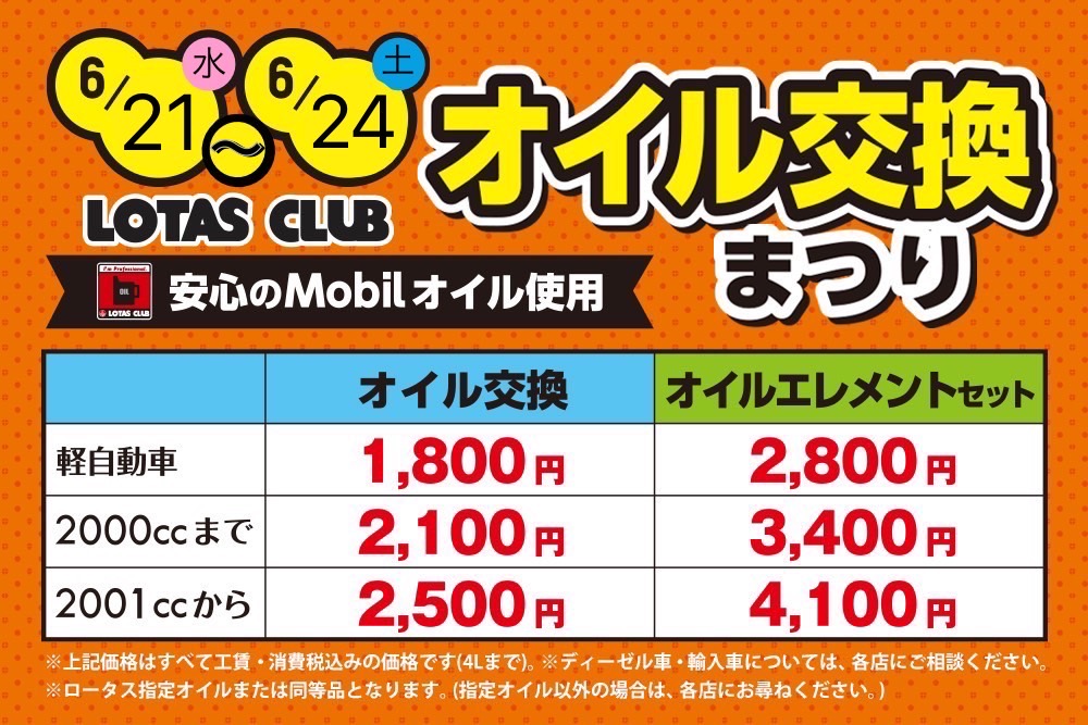 毎回ご好評のオイル交換祭りも開催いたします♪